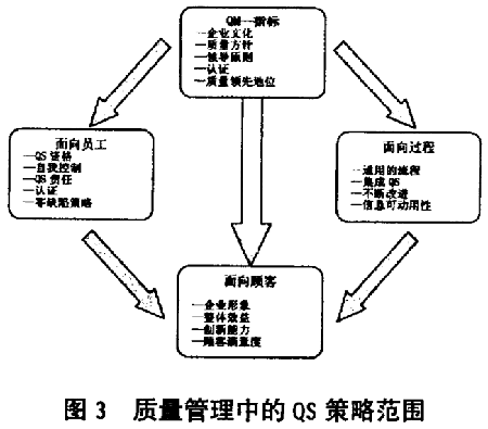 按ISO9000 族標(biāo)準(zhǔn)建立的QM體系以及與此有關(guān)的QM 手冊和為獲得QM 體系認(rèn)證提供有效的QM 體系的證明,都相互影響和支持著QM 方法。這樣,策略上的指導(dǎo)目標(biāo)及成功實施,在于使質(zhì)量管理確實成為在市場競爭中立于不敗之地的關(guān)鍵因素。