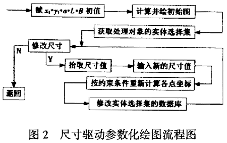 所謂尺寸驅動,是指正式圖或者是徒手勾畫的圖一經標注尺寸后,允許任意修改尺寸值。繪圖系統(tǒng)自動保持圖形與最新尺寸保持一致的圖形編輯方法。其中,操作對象是尺寸值,而操作結果是圖形的變換,這種方法顯然與傳統(tǒng)的繪圖過程是截然不同的全新方法。尺寸驅動實質上是變量幾何的思想.這種思想最初是由美國麻省理工大學D . C . Gos-sand 教授在70 年代末提出的,現在已成為熱門研究課題。目前,在國內隨著用戶對軟件產品的使用要求日益增強.這一新技術正在逐步發(fā)展應用[l]。如果要實現真正的完全尺寸驅動,借助于徒手勾圖來生成標準規(guī)范圖還有一段距離。在這里,暫時我們只是局部地討論這方面的問題。