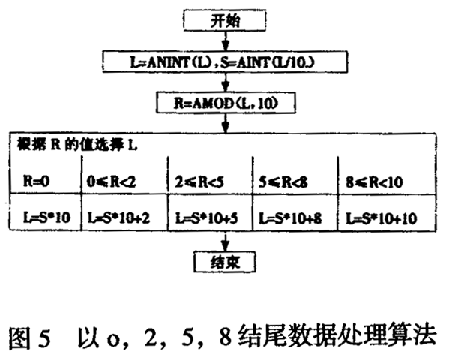 如果要求向上圓整。用如圖4 所示算法實現之,假設數據名為L。其中AINTO函數的功能是舍掉一個數的尾數。