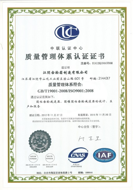 型號(hào): 質(zhì)量管理體系認(rèn)證證書;